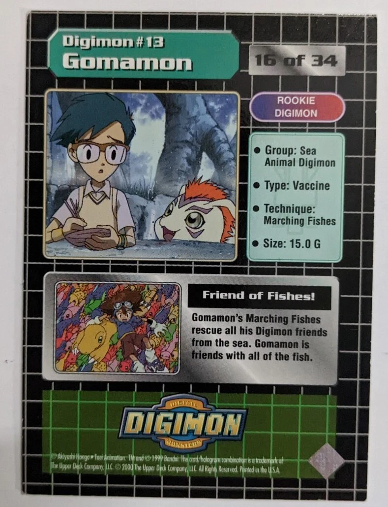 Gomamon 16 34 Digimon Trading Card Exclusive 1999 Ebay